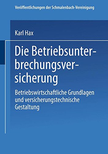 Read Die Betriebs Unterbrechungs Versicherung (Veröffentlichungen der Schmalenbach-Vereinigung) PDF